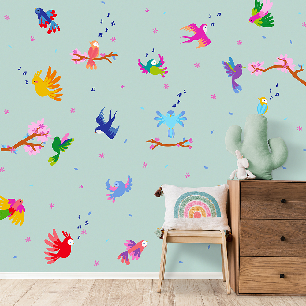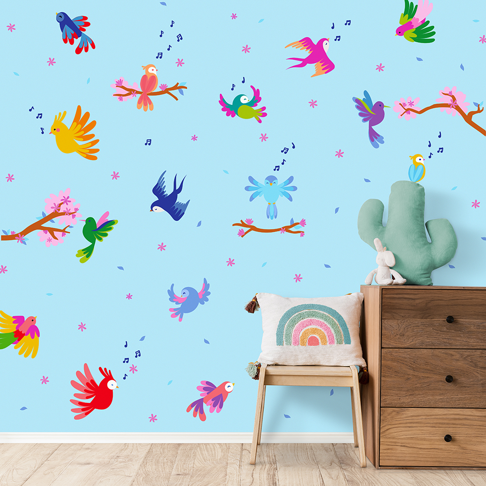 Adesivo de Parede Infantil Pássaros – Decoração Alegre para o Quarto