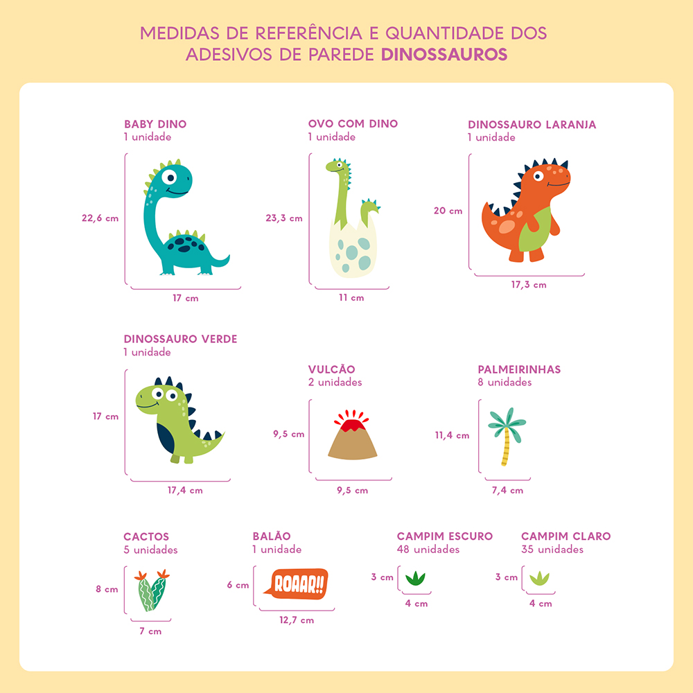 Com ilustrações exclusivas dos dinos mais queridos, o quartinho vai se transformar em um mundo jurássico e cheio de rugidos e imaginação ROARRRRR!
