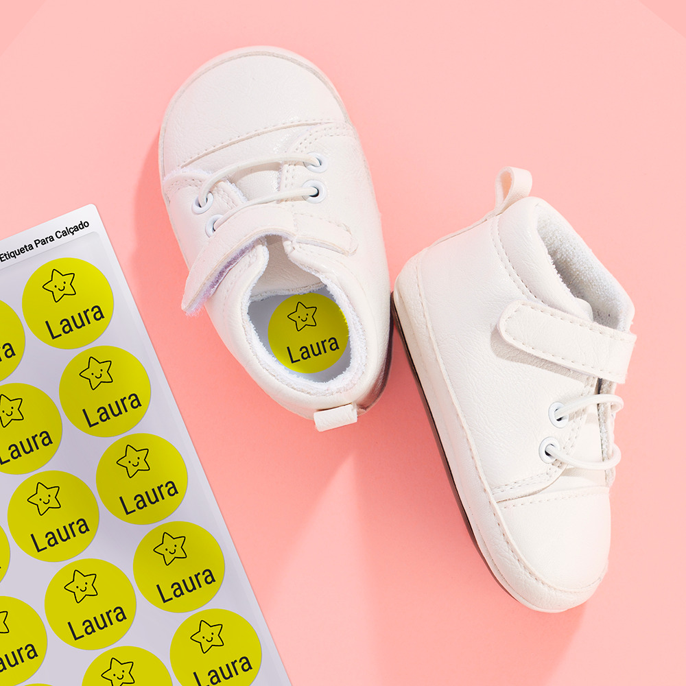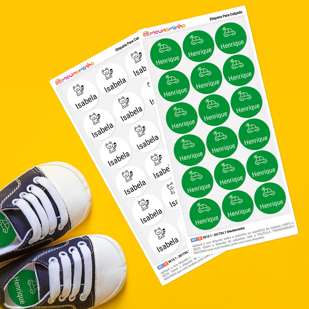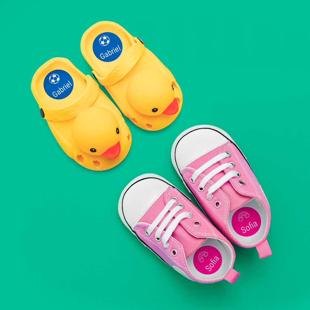 Evite confusões na escola, no clube ou na aula de dança com a Etiqueta para Calçados MeuNominho. Nossa etiqueta monocor, discreta e resistente, foi pensada para identificar tênis, chuteiras, sapatilhas, chinelos e crocs de maneira rápida — com a opção de personalizar com nome e figura (ou sem figura, se preferir).